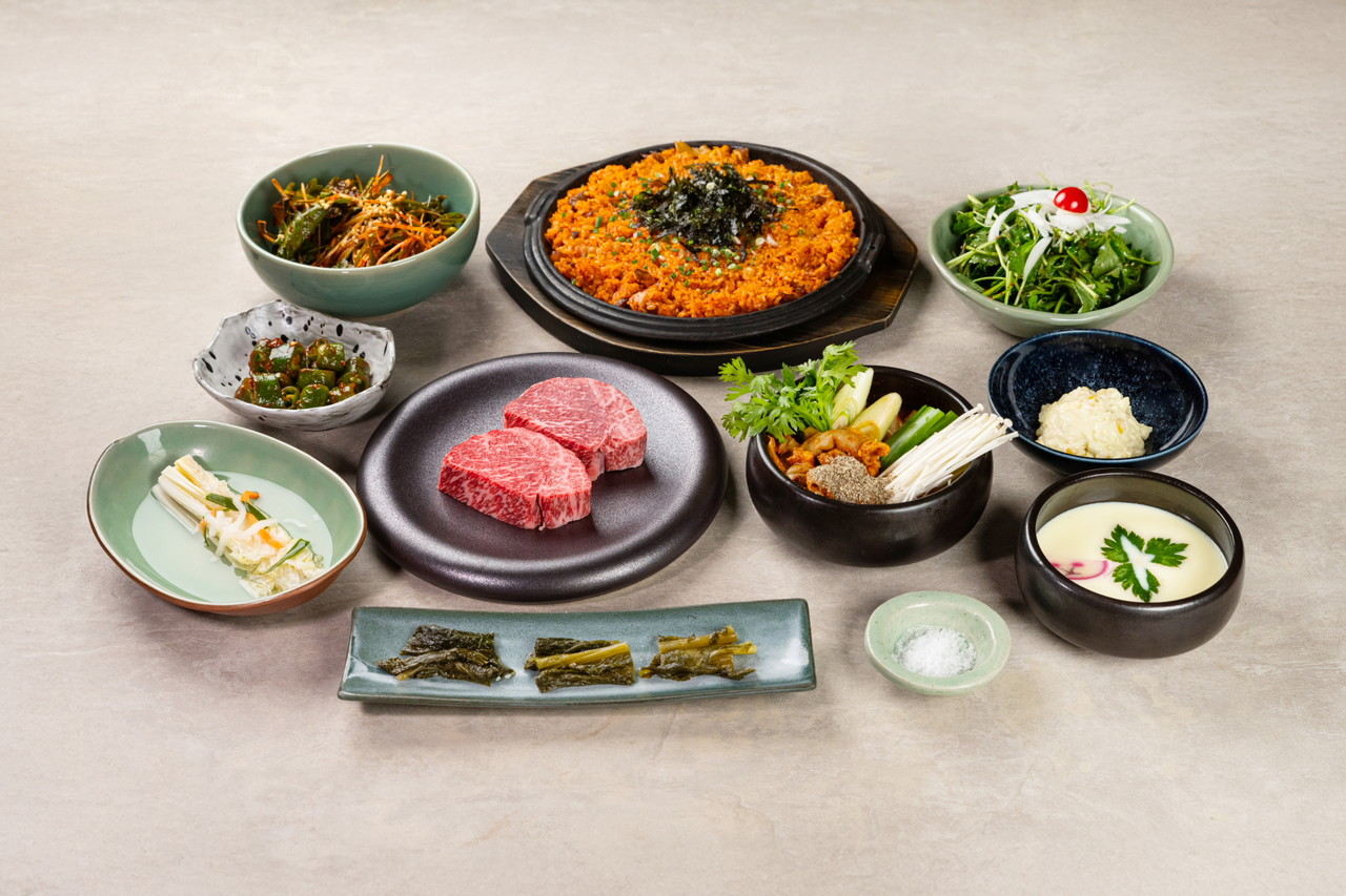You can enjoy neat basic side dishes, including salads, seasonal vegetables, seasonal dishes, spicy small intestine hot pot, and brisket fried rice for 42,000 won based on the 1++ best aged prime sirloin.